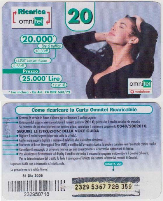 ITALIJA ITALY 06 OMNITEL VODAFONE BON ZA MOBITEL L 20 000 31 Dic 2006