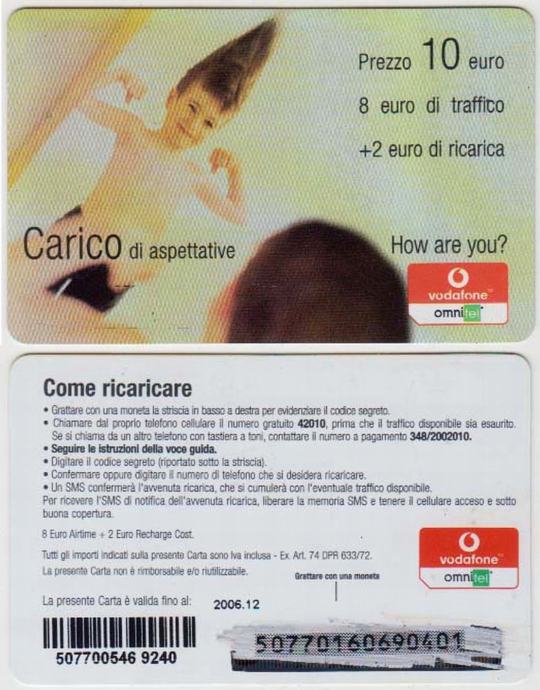ITALIJA ITALY 10 OMNITEL VODAFONE BON ZA MOBITEL 10 E 2006.12 TIP 2