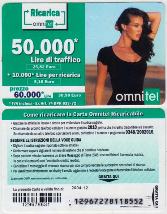 ITALIJA ITALY 102C OMNITEL BON ZA MOBITEL 50 000 L 2004.12 TIP 2