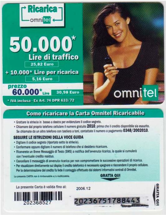 ITALIJA ITALY 108A OMNITEL BON ZA MOBITEL 50 000 L 2006.12 TIP 2