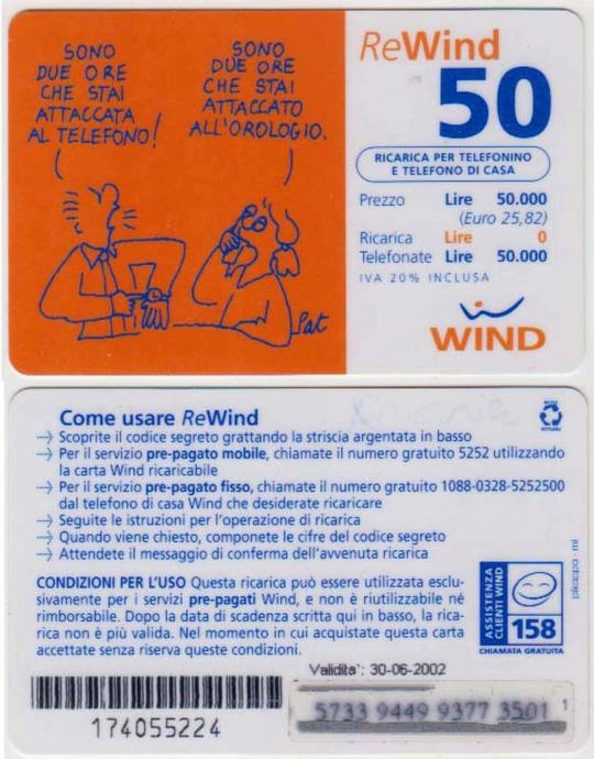 ITALIJA ITALY 153 RE WIND ALTAN BON ZA MOBITEL L 50 000 30-06-2002