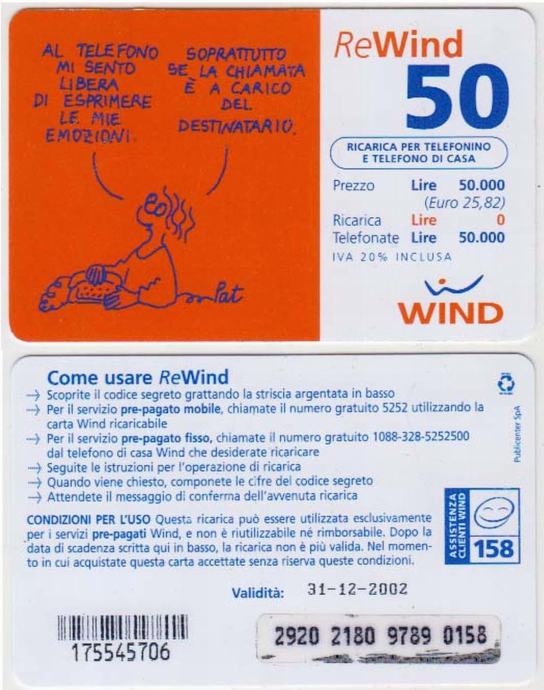 ITALIJA ITALY 155 RE WIND ALTAN BON ZA MOBITEL L 50 000 31-12-2002