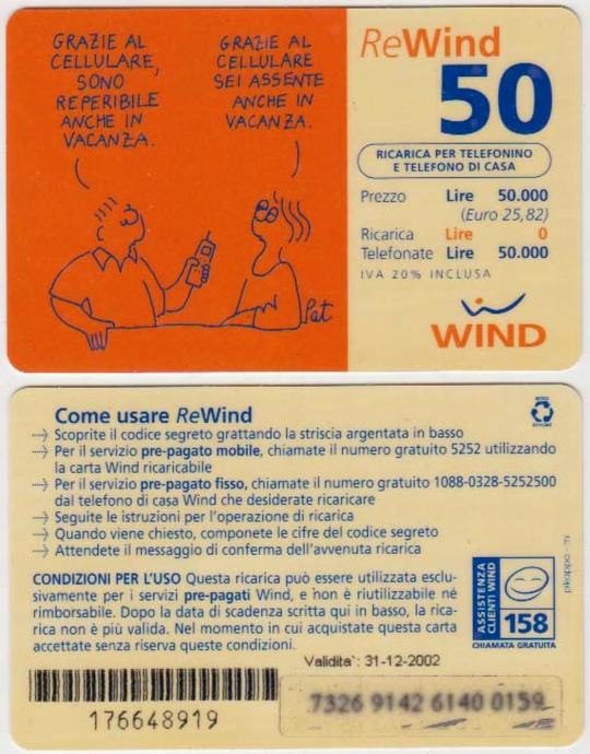 ITALIJA ITALY 160 RE WIND ALTAN BON ZA MOBITEL L 50 000 31-12-2002 T1