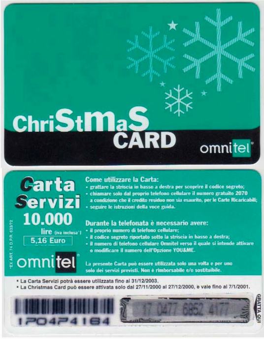 ITALIJA ITALY 84 SERVIZI OMNITEL BON ZA MOBITEL 10 000 L 31/12/2003