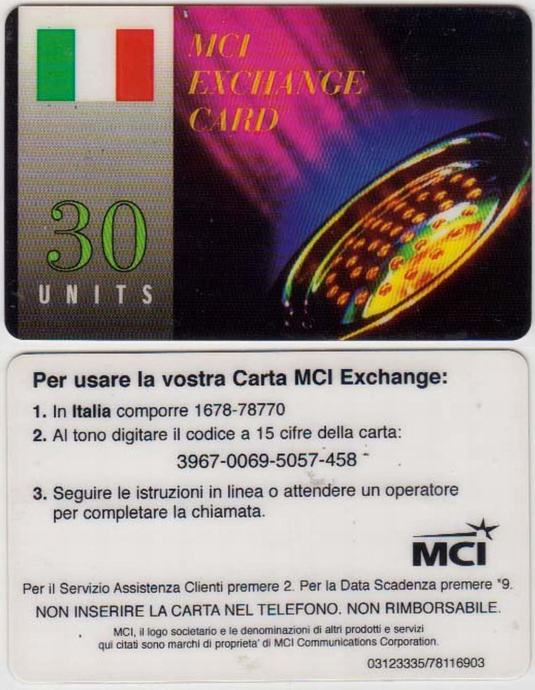 ITALIJA ITALY MCI EXCHANGE TEL.KARTICA 30 UNITS