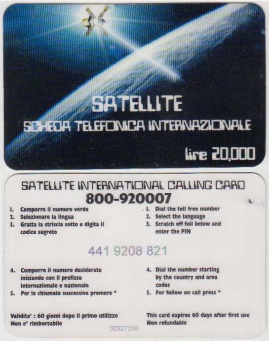 ITALIJA ITALY SATELLITE INTERNACIONALNA TEL.KARTICA L.20 000