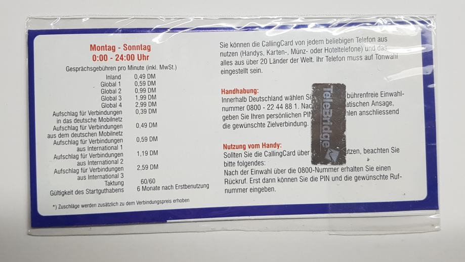 KARTICA BON STRANI TELEBRIDGE CALLING CARD DUKE 2000, NOVO