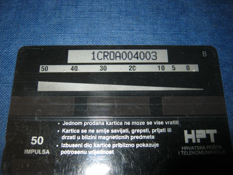 Magnetska telefonska kartica,rabljena. Sa numeracijom 1CROA. Naklada je bila 5000 komada.
