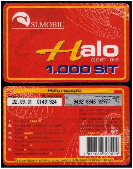 SLOVENIJA SLOVENIA 22.09.01. BON HALO 1 000 SIT