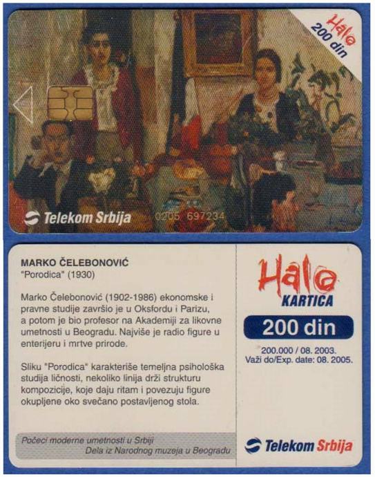 SRBIJA SERBIA TEL.KARTICA 200 DIN.MODERNA UMJETNOST SRBIJE 08.2003