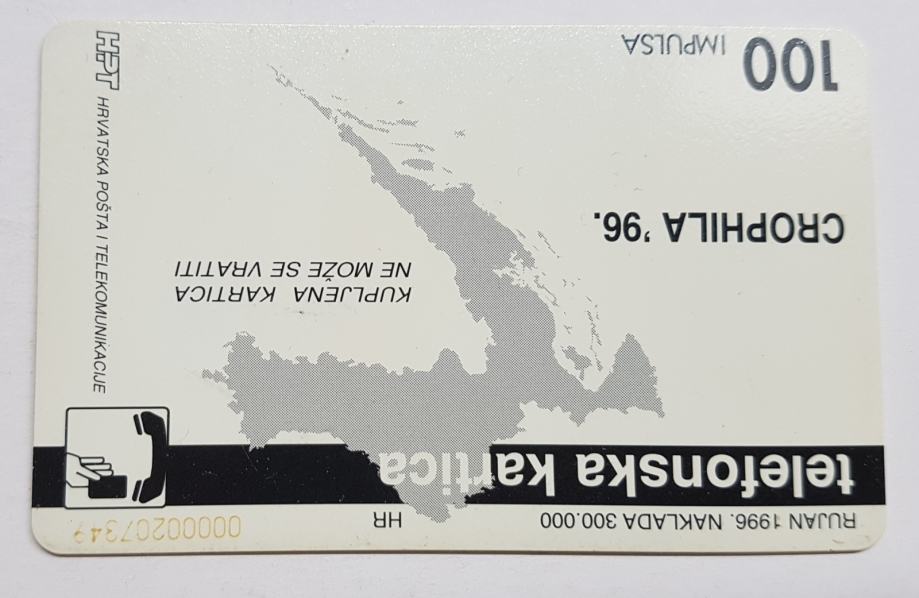 TEL. KARTICA, 100 OBLJETNICA HFD ZAGREB, 100, 1996. ERROR GREŠKA