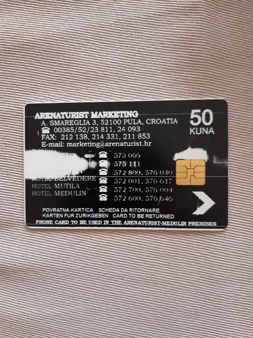 Tel.kartica Dvigrad Arenaturist 50 kuna . Crna varijanta sa čipom na aversu.