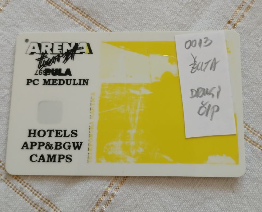 Tel.kartica Arenaturist sa greškom kod tiska u žutoj boji s čipom na reversu I bez broja impulsa. Drugi čip.