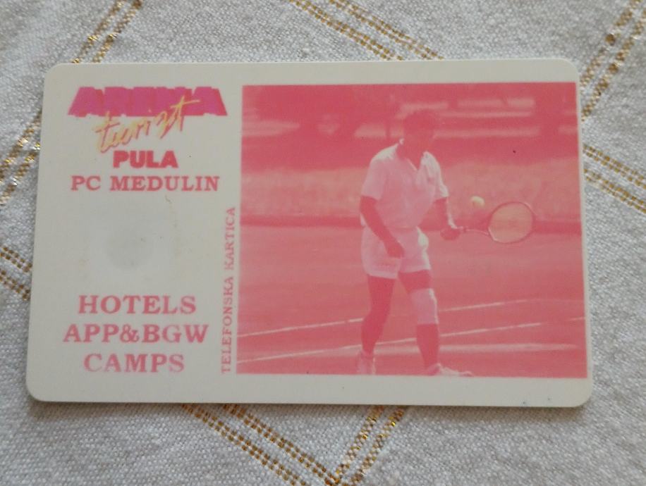 Tel.kartica Arenaturist- tenisač na aversu u roza boji I samo čipom na reversu desno.