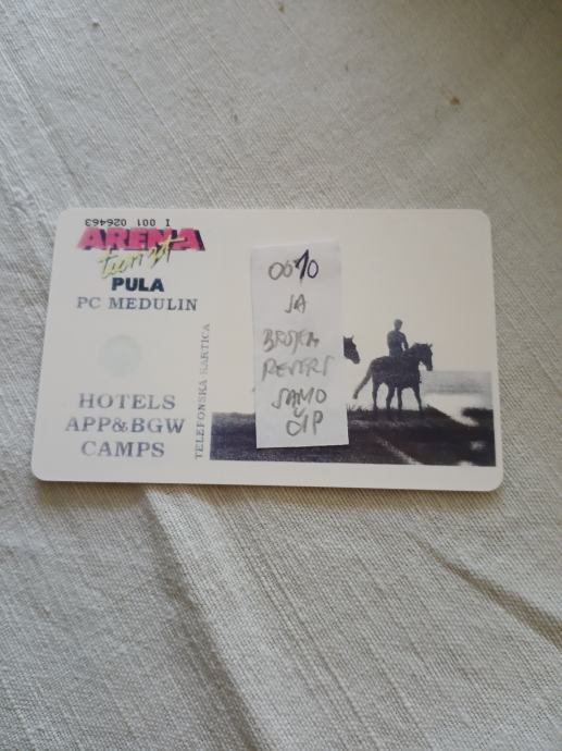 Tel.kartica Dvigrad konji u boji. Arenaturist Medulin sa brojem na aversu i samo čipom na reversu.