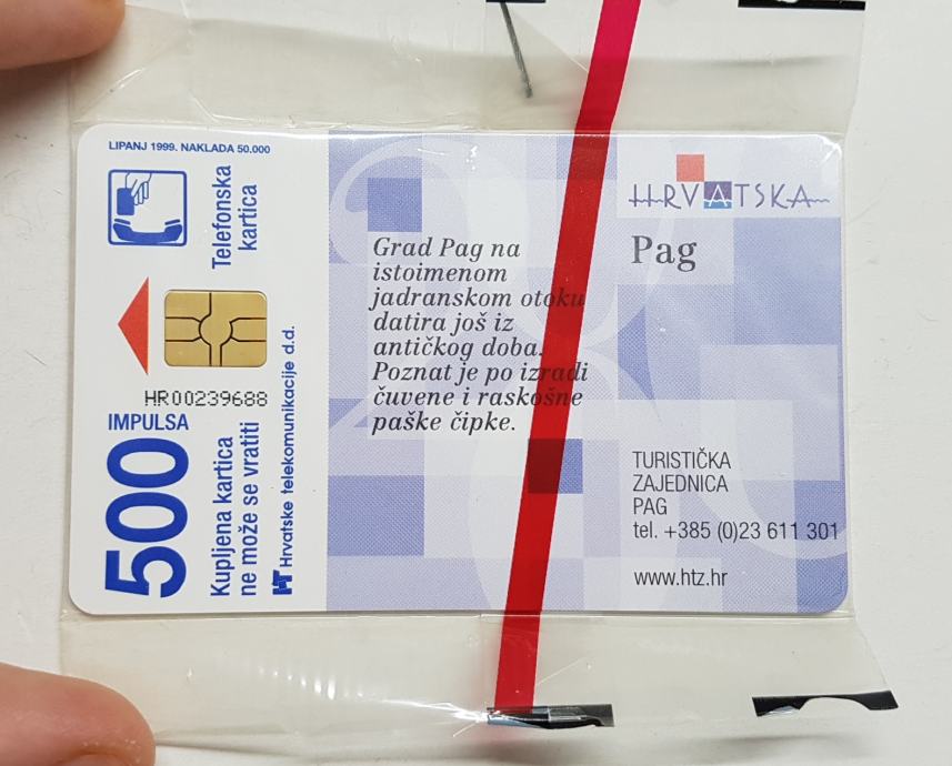 TEL. KARTICA, PAG PAŠKA ČIPKA, 500, 1999. NOVA