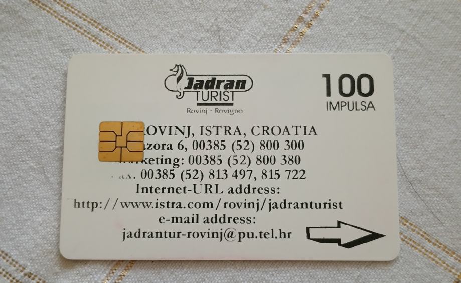 Tel.kartica Plava laguna 100 impulsa sa čipom na reversu I tekstom Jadran turist