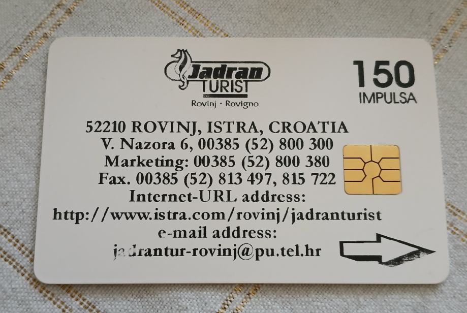 Tel.kartica Plava laguna 150 impulsa sa tekstom Jadran turist na reversu