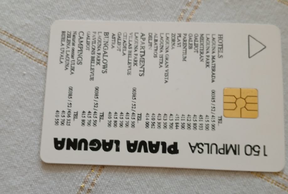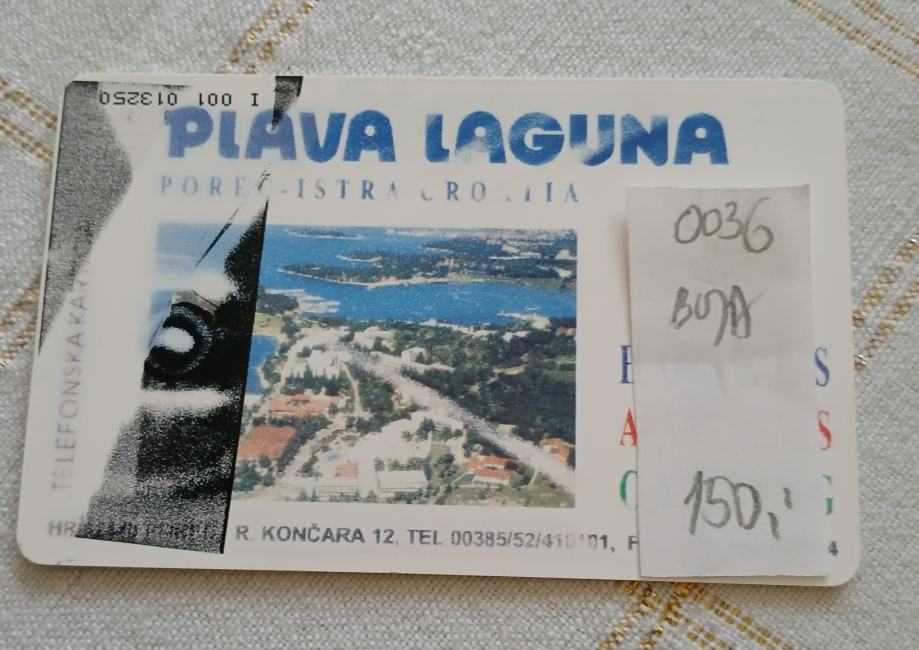 Tel.kartica Plava laguna 150 impulsa sa brojem gore lijevo I greškom u tisku,boje.
