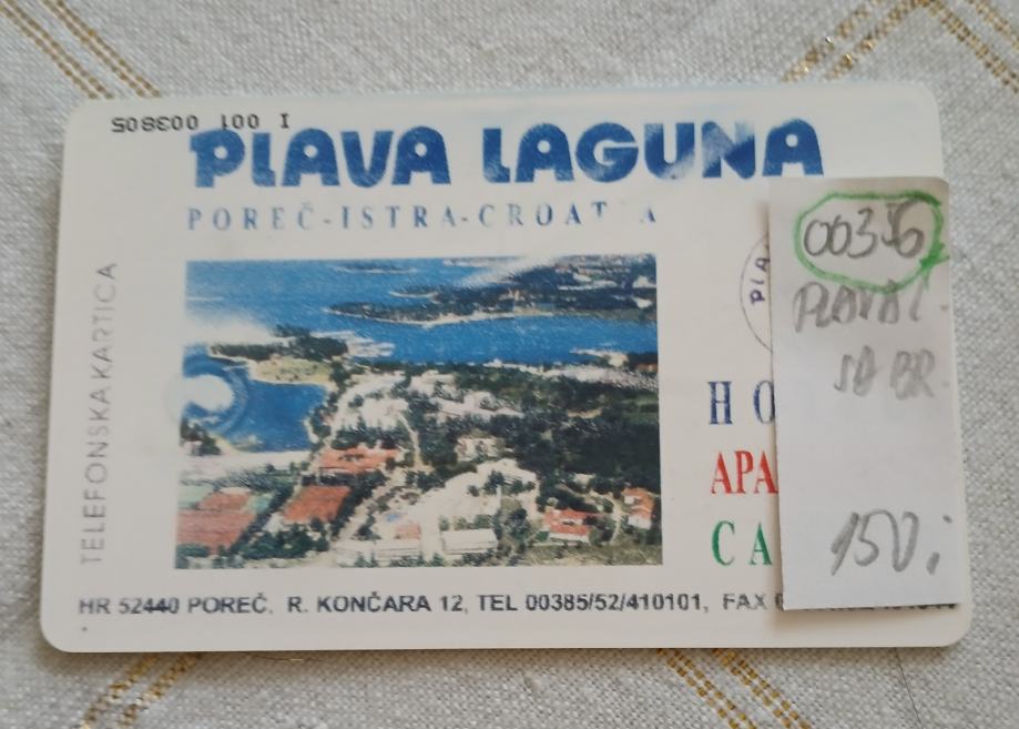 Tel.kartica Plava laguna 150 impulsa sa brojem gore lijevo na aversu