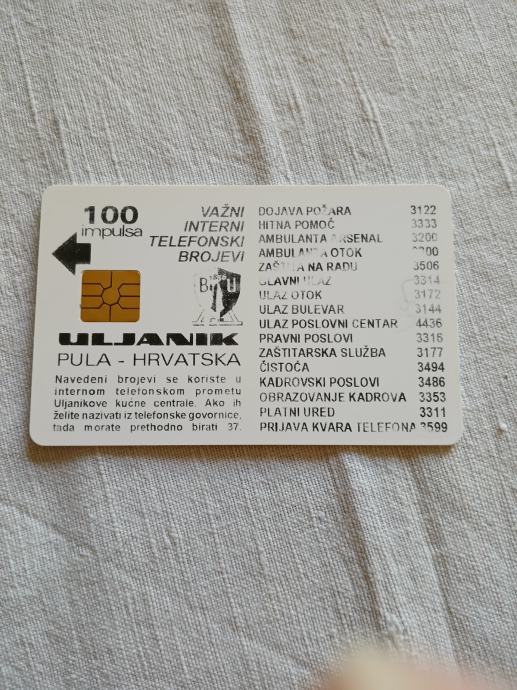 Tel.kartica Uljanik 100 impulsa sa reversu Arenaturist