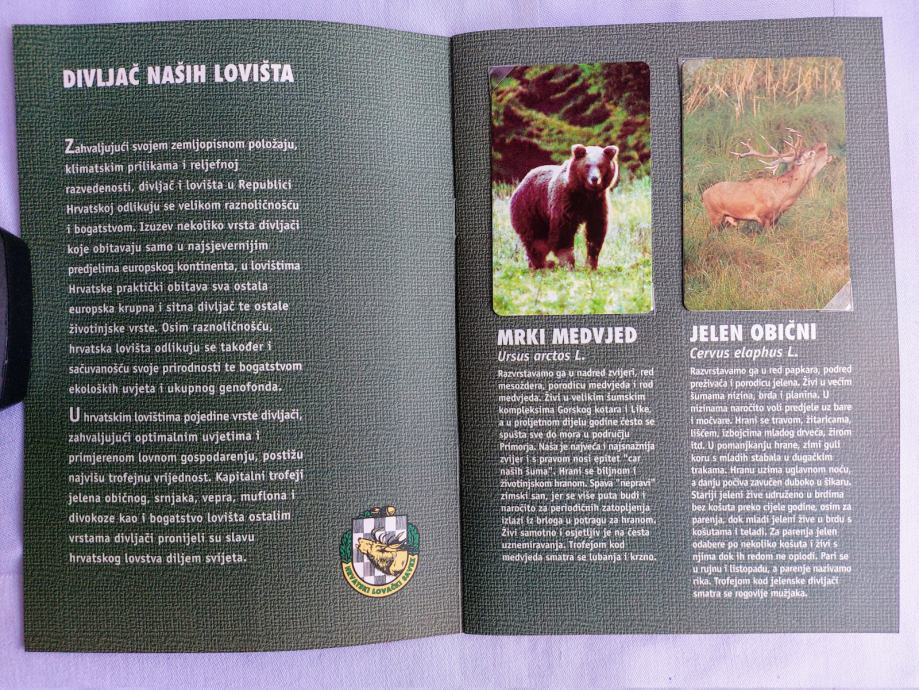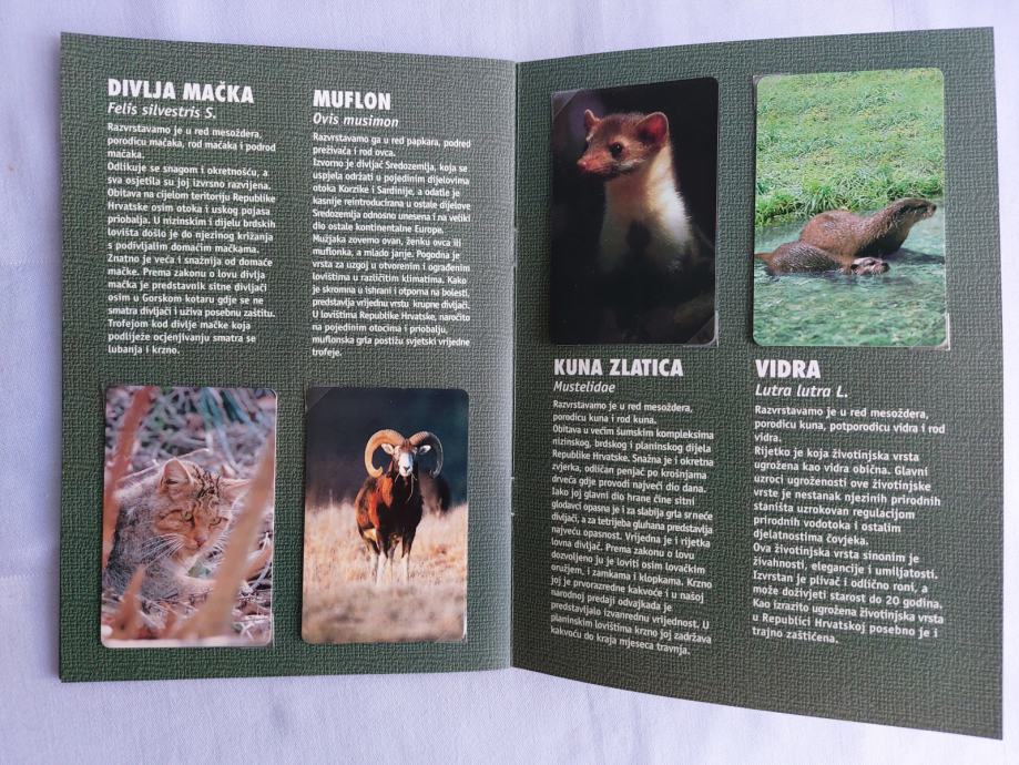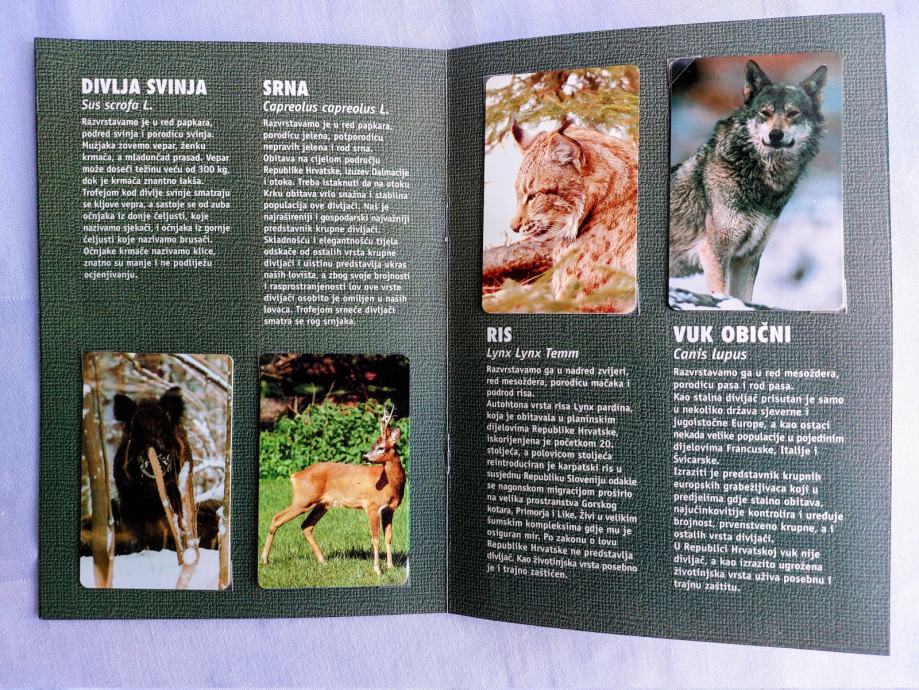 Kopletnih 10 novih - nekorištenih kartica u mapi sa opisom svake divljači.