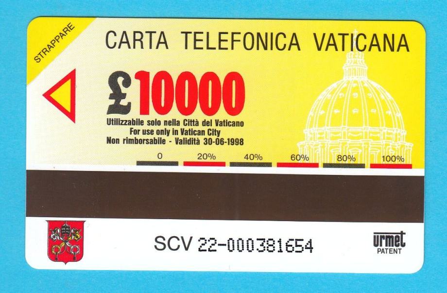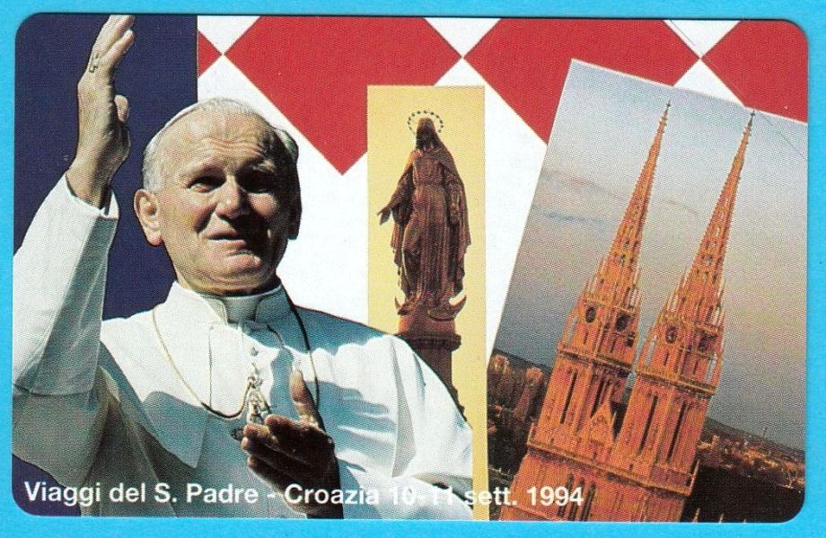 Stara Vatikanska telefonska kartica izdana u prigodi posjete Pape Ivana Pavla II Hrvatskoj 1994. godine.