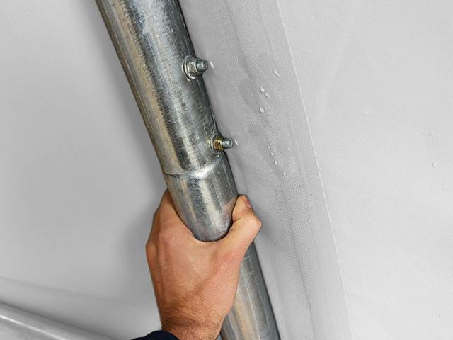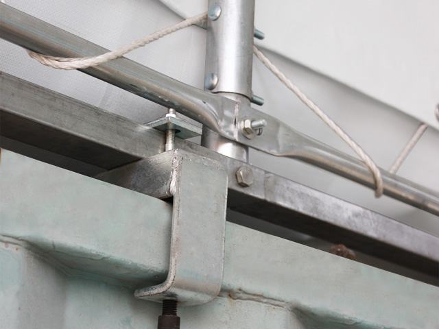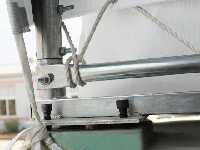 Dvodimenzionalni sustav zatezanja cerade – za optimalnu stabilnost i smanjeni rizik od oštećenja. Ova cerada je vodoravno i okomito čvrsto rastegnuta preko konstrukcije šatora i na taj način smanjuje rizik od otpuštanja.