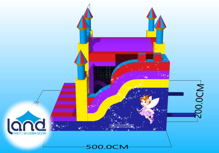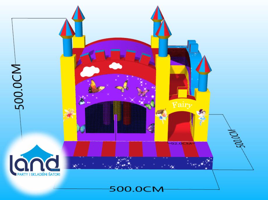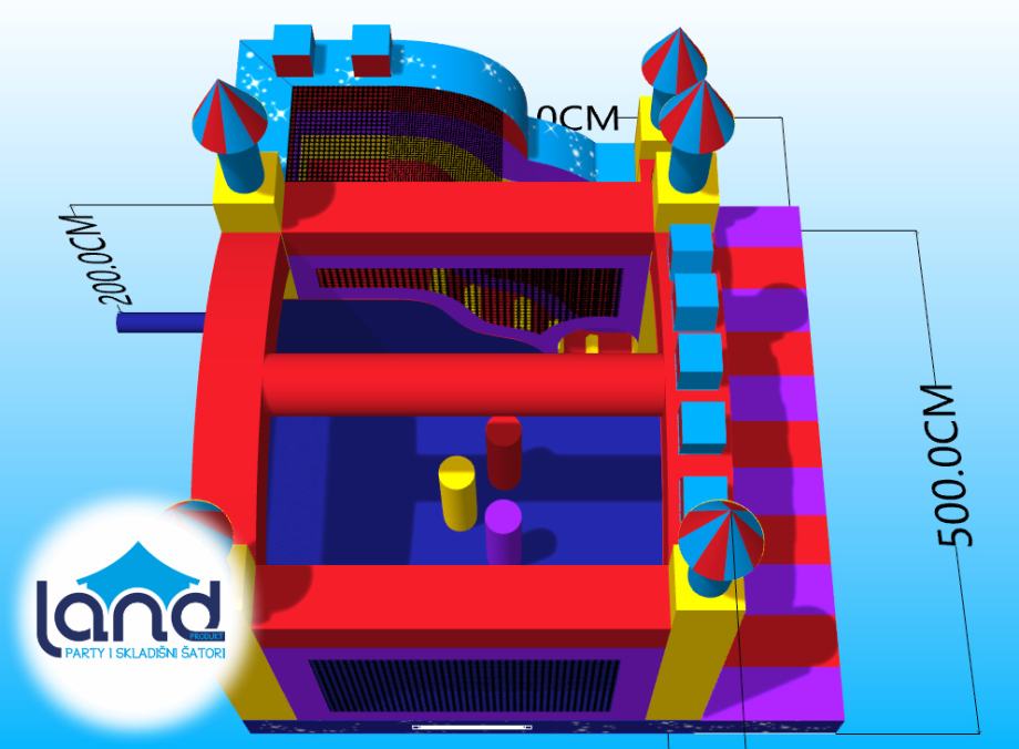 Napuhanac sa dužinom 5m, širinom 5m i visinom od 4,5m pružit će izvrsnu zabavu za djecu.
