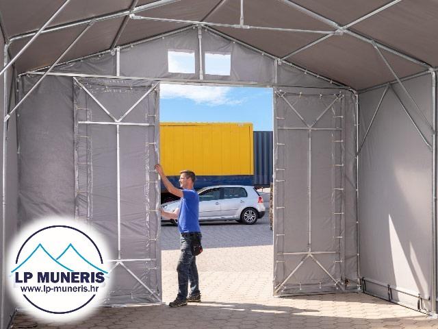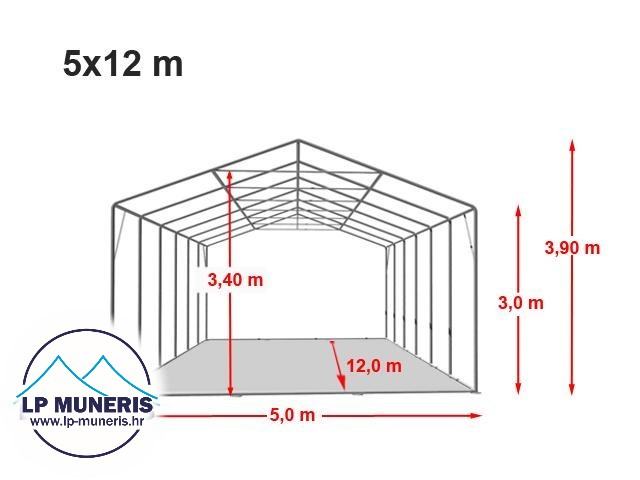 Skladišni šator 5x12 m, za sva godišnja doba, KLIZNA VRATA, ulaz 3m