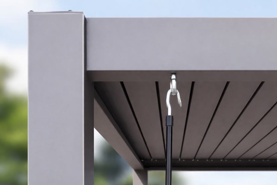 Ova luksuzna pergola kombinira stabilnost s elegancijom. Aluminijska konstrukcija otporna na hrđu i iznimno robusna podnosi vjetar i vremenske uvjete tijekom cijele godine. Zahvaljujući praktičnoj ručici, krovne žaluzine ove bioklimatske pergole mogu se podesiti u bilo kojem trenutku - čak i bez vidljive mehanike. To omogućuje savršenu cirkulaciju zraka, sprječava nakupljanje topline i stvara ugodnu, hladnu i sjenovitu atmosferu ispod vaše pergole. Pergola minimalističkog izgleda koja spaja udobnost s funkcionalnošću - bilo da je samostojeća ili pričvršćena na zgradu.