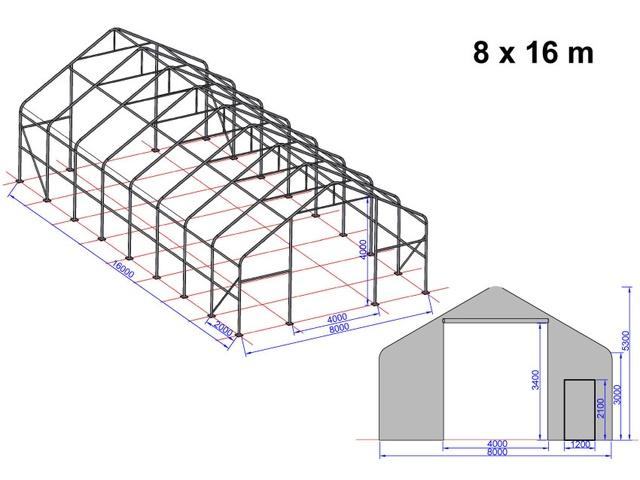 SKLADIŠNI ŠATOR EVEREST PRIME PLUS 8x16 M visina 3 m cerada 720g/m2