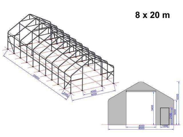 SKLADIŠNI ŠATOR EVEREST PRIME PLUS 8x16 M visina 3 m cerada 720g/m2