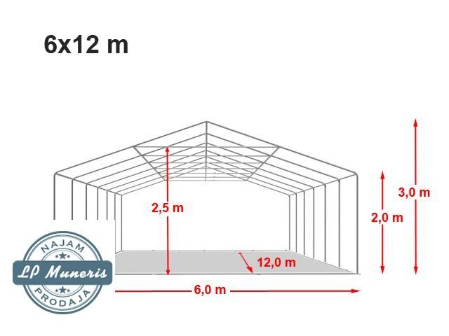 Šator 6x12 M, PVC 500 g/m2, pojačana konstrukcija, novo, AKCIJA