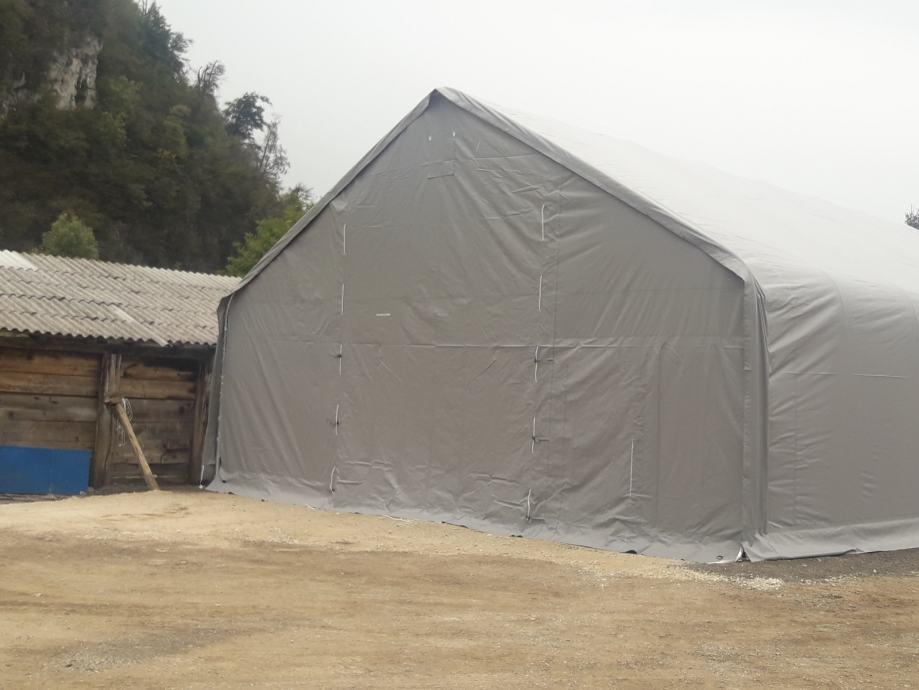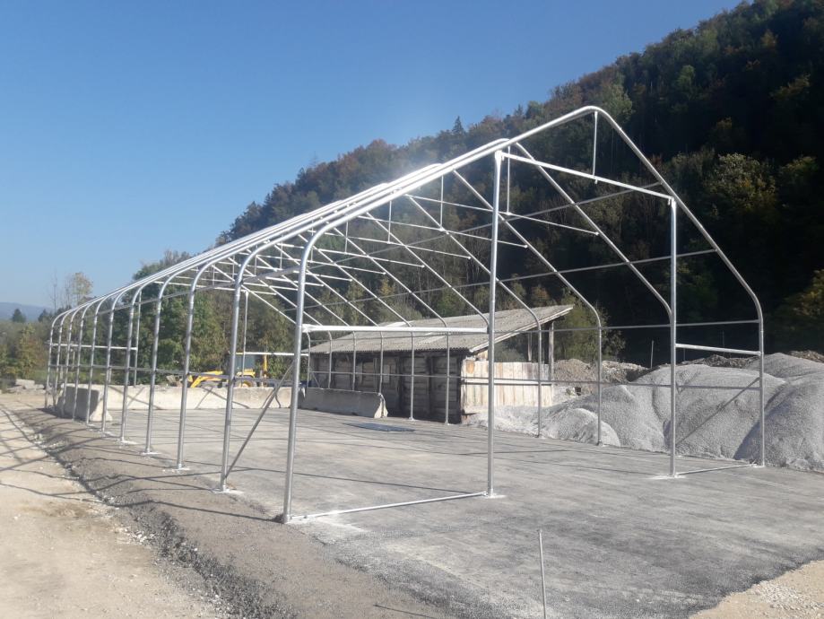 Prvoklasni materijali kao što su čvrste pocinčane cijevi i visoka kvaliteta PVC cerade osiguravaju robu, strojeve i vozila od svih vremenskih uvjeta i ljeti i zimi.