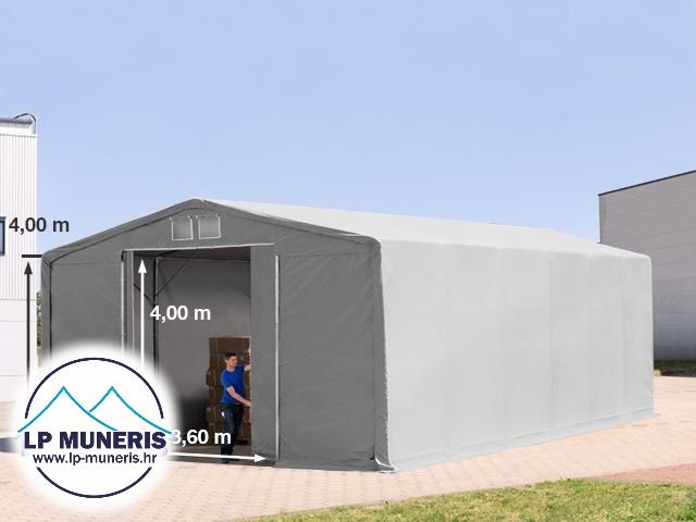 Skladišni šator 8x12 , KLIZNA VRATA, ulaz 3,6m, PVC 550 g/m2