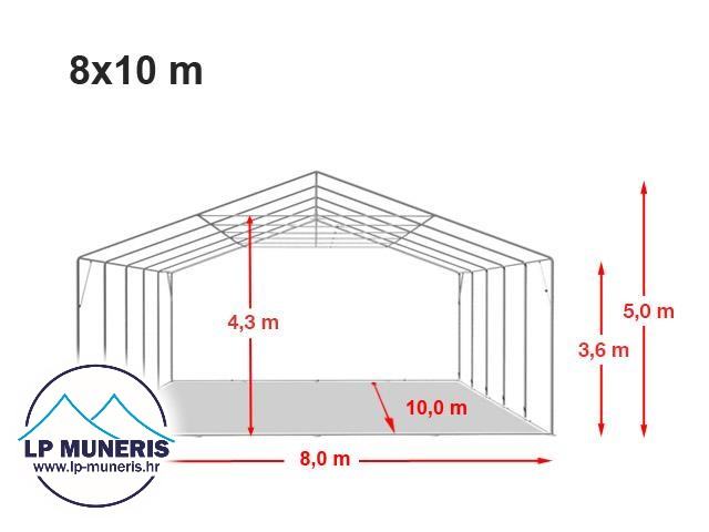 SKLADIŠNI ŠATOR - ŠATORI, 8x10M, VRATA NA PODIZANJE, ulaz 3,6m