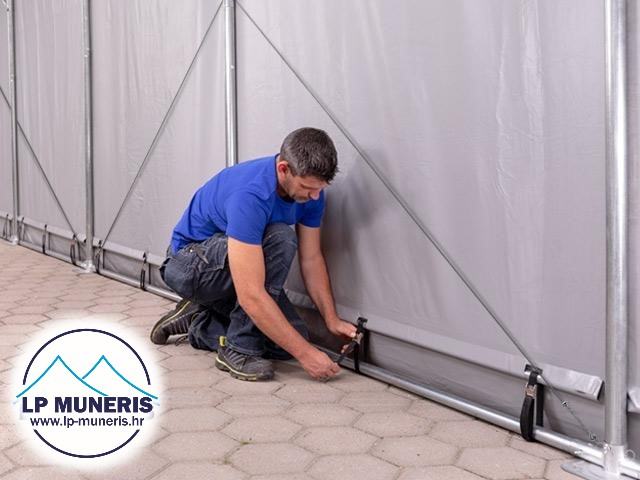 PRODAJA SKLADIŠNIH ŠATORA SA RAZLIČITIM MODELIMA ULAZA: patent zatvarač, vrata na podizanje i klizna vrata.