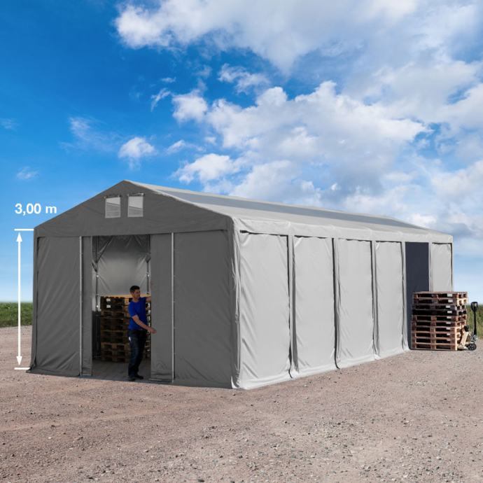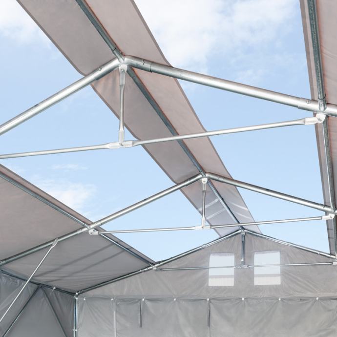 Pocinčane cijevi i jaka PVC cerada garantiraju dugi vijek trajanja. Professional Prime linija čini gornju klasu naših skladišnih šatora i nudi različite visine ulaza, između 2 i 4 m. Ovi skladišni šatori su izrađeni od više čelika i stoga je širi promjer cijevi.