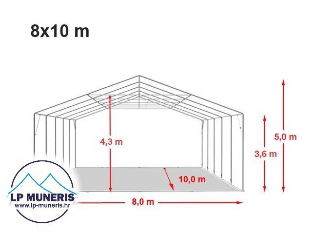 Skladišni šator 8X10, VRATA NA PODIZANJE, ulaz 3.6m, PVC 550 g/m2