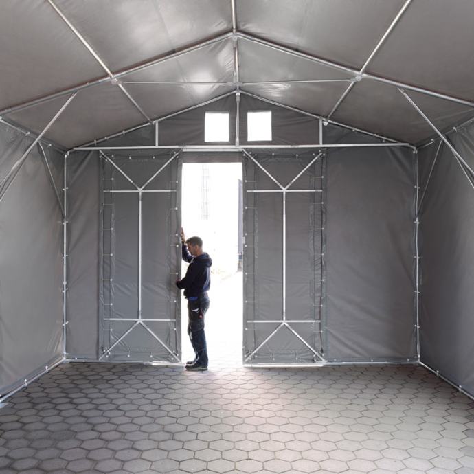 Pocinčane cijevi i jaka PVC cerada garantiraju dugi vijek trajanja. Professional Prime linija čini gornju klasu naših skladišnih šatora i nudi različite visine ulaza, između 2 i 4 m. Ovi skladišni šatori su izrađeni od više čelika i stoga je širi promjer cijevi.