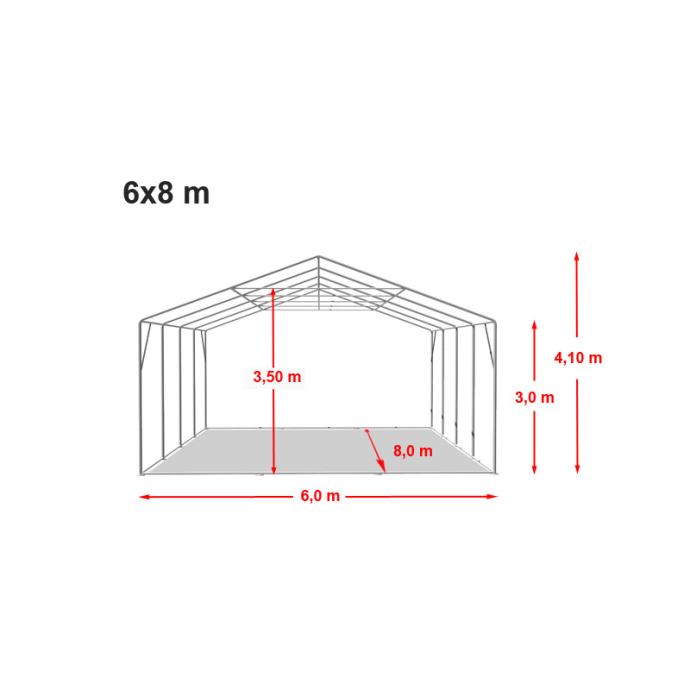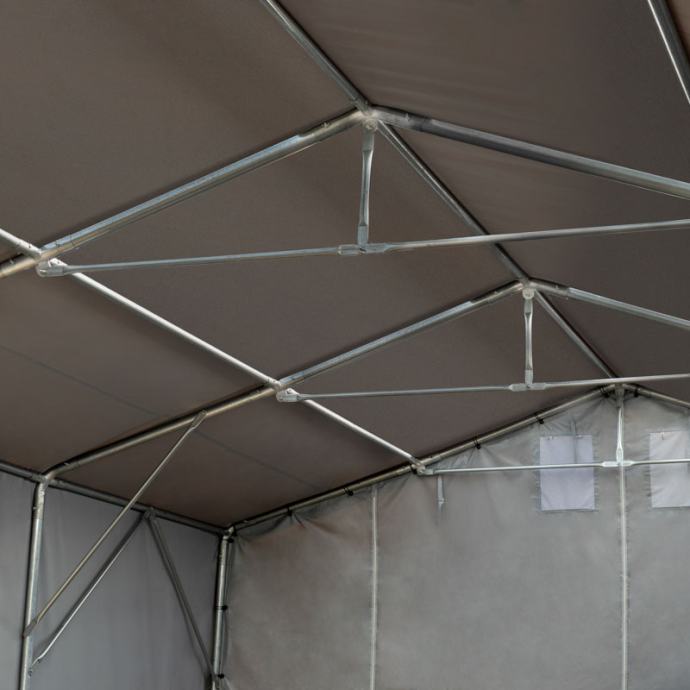 Ova konstrukcija šatora je sigurna oklada, prkosi vjetru i vremenu i dizajnirana je za korištenje tijekom cijele godine. Profesionalni šator za pohranu duguje svoju izvanrednu stabilnost otprilike 50% više čelika, ugrađenom u njegove ekstra jake potporne cijevi i elemente za ojačavanje na krovu i podu. To znači da se sile mogu optimalno raspršiti i šator nudi najrazličitiju zaštitu tijekom cijele godine. Potpuno pocinčane čelične cijevi čine stražnju osnovu. Štite od korozije i vremenskih uvjeta te su manje osjetljive na udarce - poput čeličnih cijevi obloženih prahom. Debljina čelika i promjer čelične cijevi posebno su vezani za visoko zahtjevne krajeve, produljuju razdoblje korištenja ovog šatora i čine ga izuzetno robusnim i otpornim.
