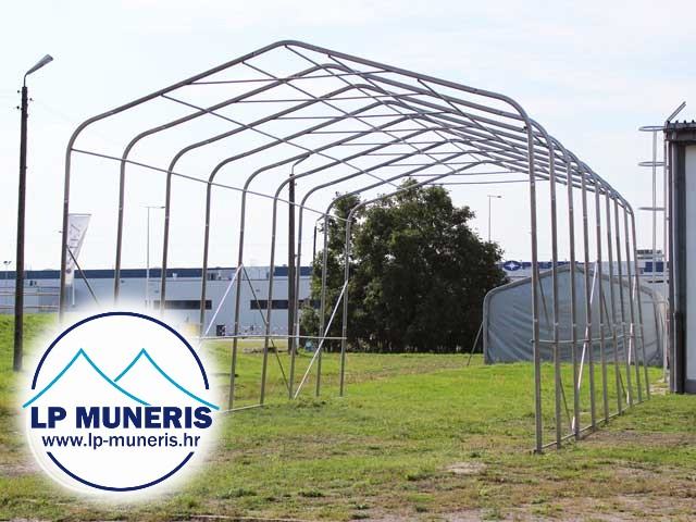 Prvoklasni materijali kao što su čvrste pocinčane cijevi i visoka kvaliteta PVC cerade osiguravaju robu, strojeve i vozila od svih vremenskih uvjeta i ljeti i zimi.