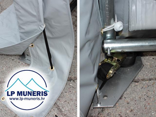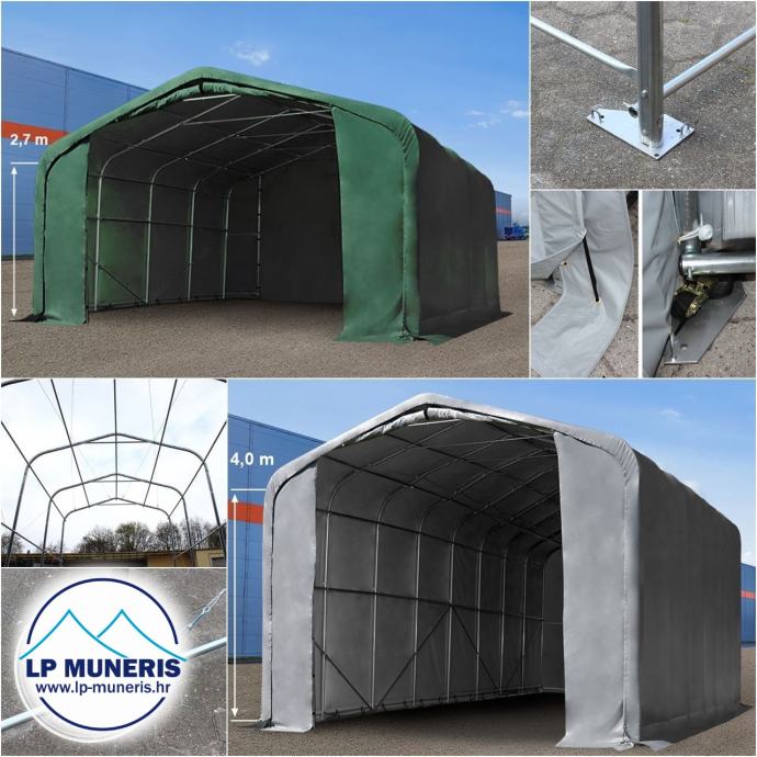 Prvoklasni materijali kao što su čvrste pocinčane cijevi i visoka kvaliteta PVC cerade osiguravaju robu, strojeve i vozila od svih vremenskih uvjeta i ljeti i zimi.