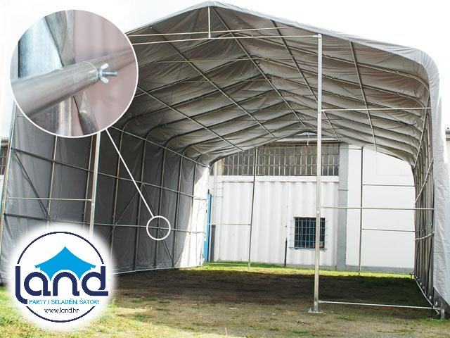 NAPOMENA: sa skladišnim šatorima koji su predviđeni za sva godišnja doba dolaze zatezne trake ( gurtne ) koje se prebacuju preko šatora nakon što se on postavi. Trake daju veću otpornost udarima vjetra.