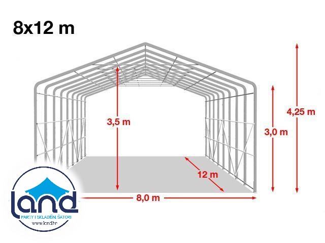 Skladišni šator Wikinger, 8X12M, PVC 550 g/m2, ulaz 3,5m, AKCIJA