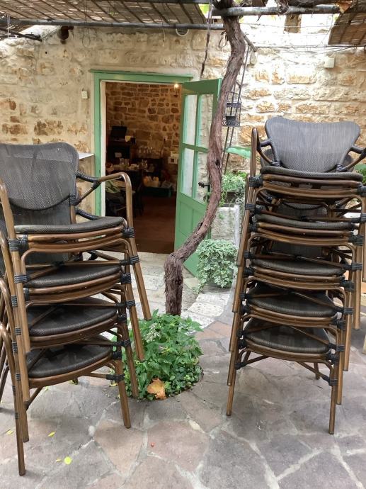 I stolovi i stolice su dvije godine bili vani, objekat je radio i zimi, to je samo dokaz kvalitete jer je namještaj u izvrsnom stanju. Razlog prodaje zatvaranje restorana.