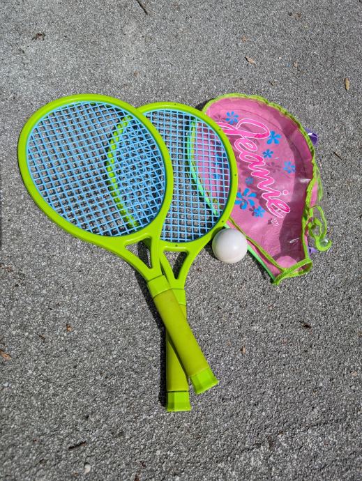 Dječji reketi za učenje tenisa, dolaze u futroli s lopticom (možete koristiti razne spužvaste ili druge loptice), odlični su za prvo učenje i zabavu, imaju mekanu ručku, nisu prekruti i lijepo se igra tenis s njima.