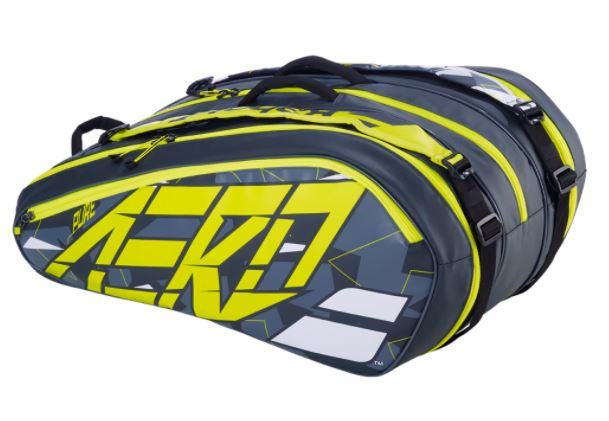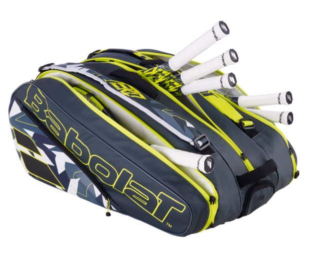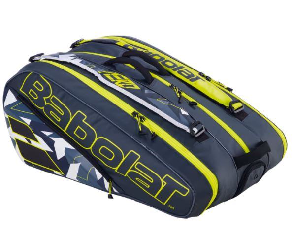 Babolat Racket Holder x 12 Pure Aero 2023 je najnoviji model torbe koju koriste Carlos Alcaraz, Felix Auger Aliassime i ostali ATP igrači iz Babolat obitelji. Torba sadrži 3 glavna pretinca u kojima se nalaze veliki izotermni pretinac za 4 reketa i pretinac za tenisice s ventilacijom te razni džepovi za pribor. Mekano podstavljene naramenice daju mogućnost nošenja torbe kao ruksak što je čini vrlo udobnom prilikom vožnje na biciklu ili jednostavno na putu do terena. Torba je opremljena novom unutaršnjom oblogom izrađenom od 100% recikliranog materijala PET-a - za zaštitu naše planete.