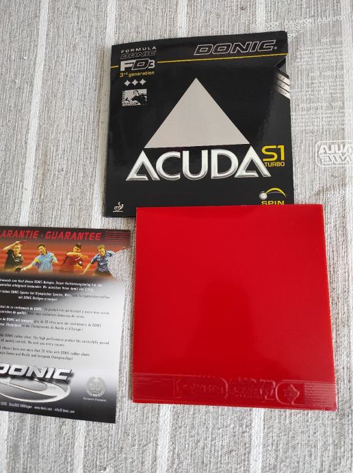 Prodajem vrhunske DONIC ACUDA S1TURBO gume crvenu i crnu vrlo povoljno.Cijena je 28E po gumi.